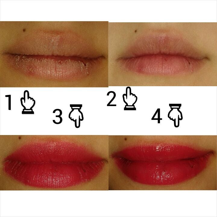 Hier heb ik 8 foto's van 4 verschillende lipsticks.